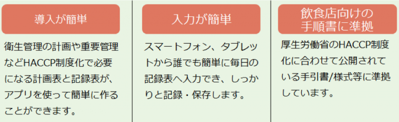 特に一般飲食店事業者向けに、厚生労働省や日本食品衛生協会のホームページで公開されている手引書/様式等に準拠した形で運用することができます。
