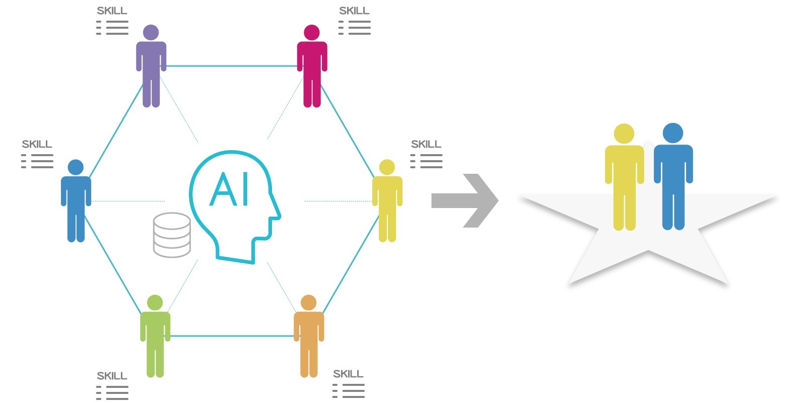 社員・スタッフのスキルや実績データと求められる業務を分析し、やりがいとパフォーマンスを引き出すマッチングを行います。