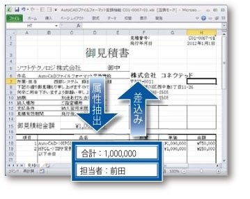 Excelファイルをドラッグ&ドロップで登録すると、Excel表のセルに記載された様々な値が属性として抽出され登録されます。また、その逆で、FullWEBで属性を変更すれば、その変更がExcel表内のセルに反映されます。