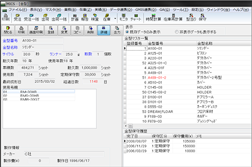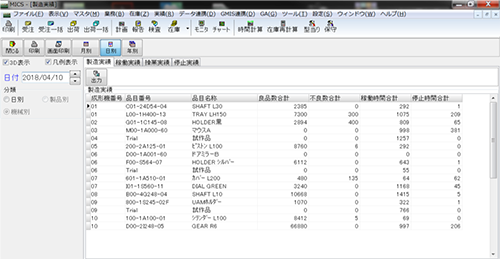 製造実績、検査実績、稼働実績、入出庫実績、金型保守管理